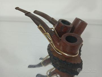 Set 3 Pipe Rossi in Radica con Poggiapipe Artigianale Vintage In buone condizioni come da foto