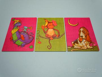 Set di 3 quaderni vintage anni 80 da collezione, con immagini raffiguranti animali cane, scimmietta e drago, in atteggiamenti buffi.