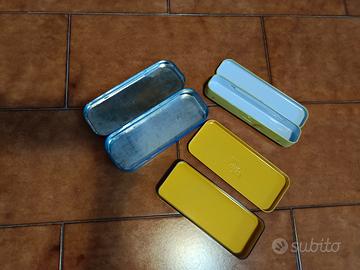 Tre scatole di latta, perfette come portapenne o contenitori.