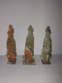 Vendo set di 3 statue decorative in onice verde naturale, provenienti dal Brasile e acquistate negli anni ’80.