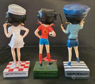 3 statuette da collezione in resina Betty Boop,un poliziotto USA un infermiere un calciatore, altezza 15 cm circa ,nuovo ma senza scatola originale