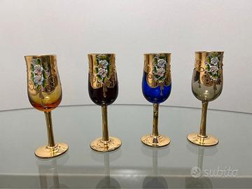 - n. 6 bicchierini da liquore/rosolio di colori assortiti (cobalto, bordeaux, giallo, fumè) - H cm 13 ca.