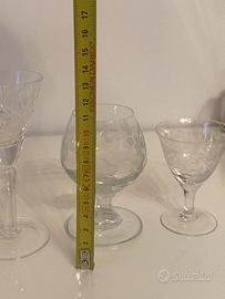 Vendo set 4 bicchieri cristallo inciso degli anni 30, ogni uno con forma e altezza diversa.