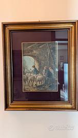 - Interno con bambini al focolare – scena notturna con madre e bambini davanti al camino acceso, con galline sul pavimento