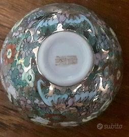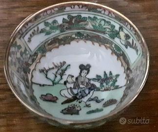 Gruppo di 4 piccoli oggetti in, ceramica. Ciotolina cinese, dai colori deliziosi, diametro 5 cm., alta 3 cm.