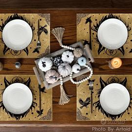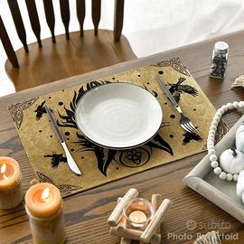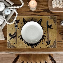 Set 4 tovagliette americane rune vichinghe lupo nero oro halloween 30 x 45 cm