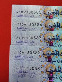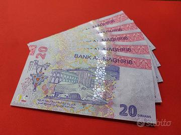 Set di 5 banconote da 20 Dirhams del Marocco del 2023, in perfetto fiordistampa e con numerazione consecutiva