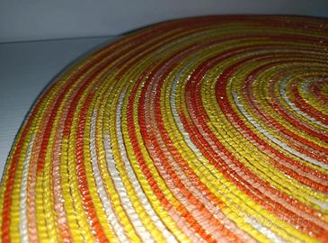 Set 5 Sottopiatto Tovaglietta rotonda in poliestere intrecciata arcobaleno, lavabile, 38cm