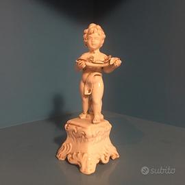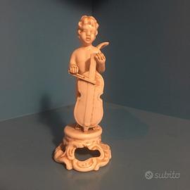 Vendo set di 5 statuette in porcellana / ceramica bianca raffiguranti putti/ cherubini musicisti ( violino, violoncello,flauto/ direttore, piatti, ecc) Marchio sotto la base “BASSANO”con piccola corona blu ( Bassano del Grappa Italia ) Stile Capodimonte / Rococo’, smalto avorio lucidi, basi decorate a rilievo. Epoca: metà/ seconda metà del 900( vintage ) Dimensioni indicative: Altezza circa 12-15 cm Condizioni buone nessuna rottura evidente