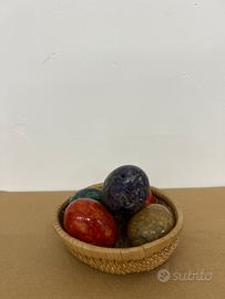 Set 5 Uova Decorative in Alabastro e Pietra Dura - Vintage