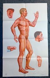 Set completo composto da sei grandi manifesti anatomici originali, ciascuno di 107 x 65,5 cm. I manifesti sono stati prodottei in Cina, presumibilmente tra la fine degli anni '70 e l'inizio degli anni '80, dal prestigioso Istituto di Medicina Tradizionale Cinese di Shanghai e realizzato dalla Casa Editrice del Popolo di Shanghai. Era destinato all’uso accademico e professionale con lo scopo di istruire medici e studenti sull'esatta localizzazione dei punti di agopuntura in relazione all'anatomia umana moderna. L'aspetto più interessante è la sintesi tra la sapienza millenaria della medicina orientale e il rigore scientifico dell'anatomia occidentale. Ogni poster analizza il corpo umano da diverse prospettive: frontale, dorsale e laterale, mostrando con precisione non solo i 14 meridiani principali, ma anche le strutture sottostanti come il sistema muscolare, lo scheletro, il sistema nervoso e gli organi interni. Le tavole includono dettagliate sezioni trasversali degli arti e focus specifici su aree delicate come l'orecchio, l'occhio e la regione pelvica, offrendo istruzioni grafiche persino sull'angolo corretto di inserimento degli aghi per evitare strutture vitali. Il testo bilingue in cinese e inglese rendono queste tavole un oggetto di interesse internazionale per la divulgazione della Medicina Tradizionale Cinese nel mondo occidentale durante il secolo scorso. Le dimensioni garantiscono un impatto visivo notevole, ideale per arredare qualsiasi spazio. Nonostante i decenni trascorsi, i poster conservano colori vividi e una carta di buona consistenza, con i segni del tempo e le pieghe ed i piccoli difetti originali date dal tempo e dalla conservazione. Saranno inviati piegati. Sono disponibili altre fotografie.