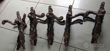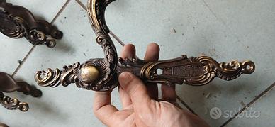 set 6 maniglie dal design vintage, realizzate in ottone con finiture che richiamano il colore dell'oro e del marrone.