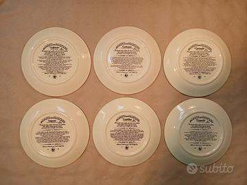 Collezione completa di sei piatti decorati vintage in porcellana Tognana "Gli amici del mattino" rappresentante uccelli selvatici. Piatti in ceramica realizzati nel 1984 in collaborazione con il WWF. Diametro dei piatti 24cm.