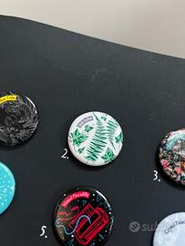 Raro set 7 spille Patrizia Pepe collezione London Tribe: drago, felce, China Girl microfono, Virtual Reality, Crystal Palace, fiori e bus rosso. Diametro 4-5cm, smalto perfetto no graffi, ispirate street style Firenze. #PatriziaPepe #LondonTribe #SpilleVintage #PinLondon #BigiotteriaUsata #ModaRefurbished #ChinaGirl