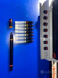 Pennini Rotring con Rapidomat - Germania '80 Misure: 0.1, 0.2, 0.3, 0.4, 0.5, 0.6, 0.8, 1.2 + Anello per compasso