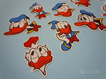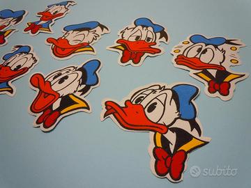 Annuncio relativo ad un set di 9 toppe anni 80 vintage nuove, Walt Disney, Paperino.
