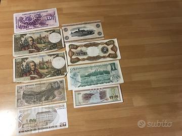 Vendo set 9 Banconote, 10 Corone Danesi 1936 1 Dollaro Canadese 1973 100 Bolivares Venezuela 1990 20 scellini Austriaci 1967 20 scellini Austriaci 1986 10 Franchi Svizzeri 1971 10 Franchi Francesi 1969 10 Franchi Francesi 1970 10 Fen Cinesi 1979 Tot € 100