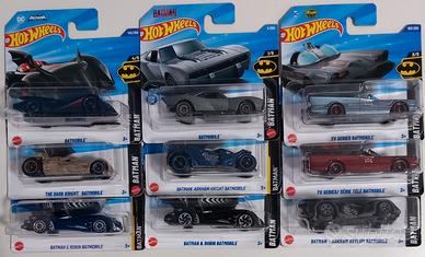 Set di 9 auto Hot Wheels Batman originali e sigillate. Il set include: - Batman: Arkham Knight Batmobile Blu 2024 - Batman & Robin Batmobile Blu 2025 - TV Series Batmobile Rossa - Batman: Arkham Asylum Batmobile Nera 2025 - Batmobile (TV Series) Celeste 2025 - Batmobile - The Batman 2026 - Batmobile - Batman- The Brave And The Bold 2025 - Batman & Robin - Batmobile Nera 2025 - The Dark Knight Batmobile Grigia 2026