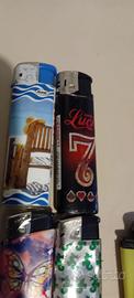 Set di sette accendini ricaricabili, tra cui un Clipper giallo. Tutti molto carini, qualche segno del tempo, come da foto.