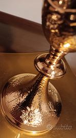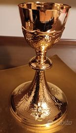 Vendesi set accessori liturgia in ottone dorato, composto da calice, patena e pisside del 1961.