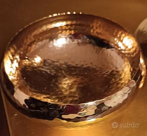 Calice con base martellata e decori e incisioni religiose e dedica incisa sottostante, diametro parte superiore 8,5 cm e parte inferiore 13,5 cm. Patena per coprire calice misura diametro 14 cm, in ottone dorato liscio. Pisside per contenere le ostie in ottone dorato martellato, diametro 11,5 cm circa. Ottime condizioni, no spedizione, esclusivamente consegna diretta in zona Lancenigo di Villorba