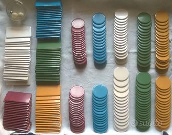 Vendo set di accessori vintage per Roulette prodotti dalla celebre marca Dal Negro. Il lotto è composto da oltre 260 fiches di varie forme e dimensioni, perfetto per integrare il vostro set o per collezionisti del marchio. Il lotto comprende: * RASTRELLO PROFESSIONALE: Telescopico (da 24 cm a 64,5 cm), larghezza 12,6 cm. Presenta leggeri segni di adesivi del tempo. * FICHES CIRCOLARI (Grandezza 2,5 cm e 2 cm): Totale 170 pezzi suddivisi in 5 colori tipici degli anni '70 (Marrone, Verde, Bianco, Blu, Rosso). * FICHES RETTANGOLARI / PLACCHE (3,9x2 cm): Totale 93 pezzi in 5 colori. * ACCESSORI EXTRA: 2 palline bianche (1 cm), 1 pallina in metallo (0,5 cm). * DOCUMENTAZIONE: Istruzioni originali cartacee "Il Gioco della Roulette" Dal Negro. Condizioni: Oggetti vintage con segni del tempo, ma ben conservati. Vendita in blocco "visto e piaciuto". Spedizione tracciabile