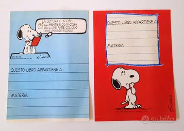 Set composto da 2 Etichette adesive per libri, quaderni, Snoopy - Schulz - 1958, United Feature Syndacate.