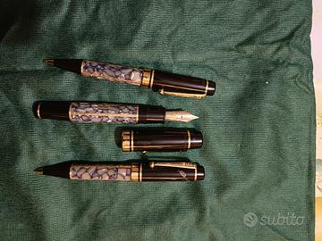 Rarissimo set, prodotto in 9000 pz, composto dalla penna stilografica, la penna a sfera, già in vendita singolarmente, e dalla inedita matita 0,7 acquistabile solo nel trittico e tutte con lo stesso numero.