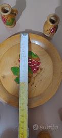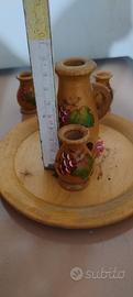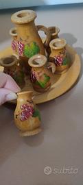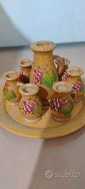 Bellissimo set vintage composto da 6 anfore piccole ed una grande, tutti in legno dipinto a mano con grappoli d'uva. Il set è completo di un vassoio in legno. Perfetto per un tocco rustico ed elegante. -Set da 7 pezzi -Legno dipinto a mano -Motivo a grappoli d'uva -Vassoio incluso