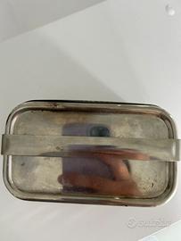 Antico set per fare iniezioni/punture in acciaio completo di siringa e ago in vetro con tappo richiudibile anni 50 circa o prima. Per collezionisti