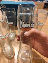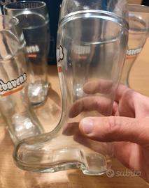 Vendo splendido set composto da 6 bicchieri originali Birra Pedavena, marchio storico della tradizione brassicola italiana dal 1897. I bicchieri presentano l'iconica forma "a stivale" (Bierstiefel), un pezzo da collezione dal design unico, perfetto per gustare una birra ghiacciata in compagnia o per arredare il proprio angolo bar/taverna. Caratteristiche del set: Quantità: 6 pezzi (set completo). Capacità: 0,5 litri (mezzo litro). Stato: Nuovi, mai usati. Dettagli: Logo classico Pedavena serigrafato frontalmente con indicazione "Dal 1897". Materiale: Vetro di alta qualità, resistente e trasparente.