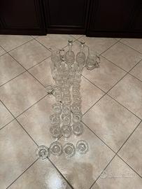 Set di bicchieri: - 9 bicchieri acqua - 10 bicchieri vino - 4 coppe champagne - 9 bicchieri liquore - 6 bicchieri limoncello - 2 bottiglie - 2 brocche