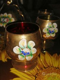 Set bicchieri brandy+bottiglia vetro decoro a mano