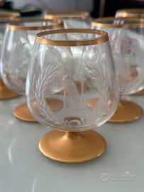 Set di 6 bicchieri da cognac Napoleon vintage, primi anni ’80, in vetro soffiato con eleganti dettagli in oro e logo inciso. Linea classica e raffinata, perfetti per amanti del genere o per arricchire una collezione di bicchieri da degustazione.
