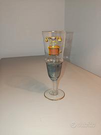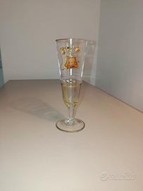 I bicchieri hanno steli corti e basi leggermente svasate con un bordo dorato.