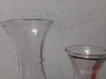 Coppia di brocche tradizionali per il servizio del vino sfuso, nel classico formato da osteria. Il set comprende un contenitore da un quarto di litro e uno da un quartino (0,25L e 0,125L), ideali per chi ama apparecchiare la tavola in stile rustico o per collezionisti di oggettistica vintage italiana.