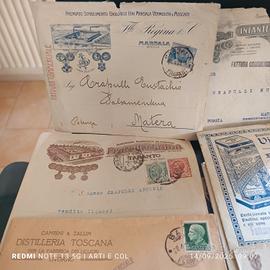 splendido set di numerio 8 buste commerciali affrancate anni 20-30 con frontespizio con immagini di prodotti alimentari . distillati e paste .