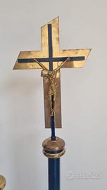 vendo set candeliere funebre tubo tondo in metallo, colore blu. Set composto da 7 pezzi; composizione: 1 croce senza lampada, 4 candelieri con lampada e boccia in vetro, 1 coppia di reggibara. Funzionamento elettrico. Completo di custodie come da foto. Il set è funzionante, presenta qualche piccolo graffio dovuto all’uso e all’usura del tempo. Eventuale spedizione (che posso prenotare ed effettuare) a mezzo corriere, costo da preventivare con il corriere e a carico dell'acquirente, solo dopo riscontro pagamento. Vendesi causa nuovo acquisto attrezzatura. Primo contatto e ulteriori informazioni via mail utilizzando il tasto in basso “contatta” oppure a : venditaattrezzaturafunebre@hotmail.com
