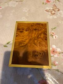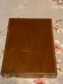 Set carte da gioco composto da scatola portacarte da gioco in radica (dim. cm 12*16*3,7 marca dal negro) con 2 pacchi di carte da gioco modiano, osservare foto per pregi e difetti.