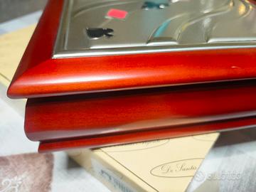set in legno e lamina in argento con all'interno carte da gioco, fish poker e dadi.oggetto da collezione nuovo.