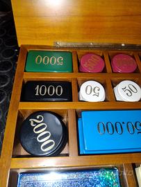 Set da gioco in legno Vintage con carte e fish. Collezione R.Romagnoli Bologna. Tutto in perfette condizioni pari al nuovo.