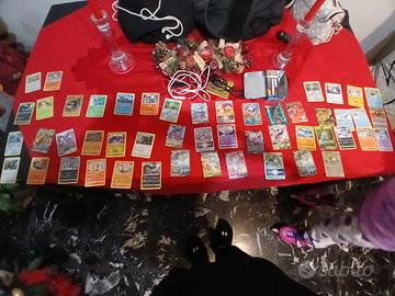 questi sono due set di carte oro (16 carte) e altre carte miste (50 carte) per un totale di 66 carte solo che alcune sono un po rovinate in particolare tornado V base che ha il retro molto rovinato ma del resto è tutto apposto, viene dato con una confezione di metallo dei pokemon spada e scudo lost origini