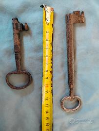 n 2 chiavi di ferro, la più lunga probabilmente fine 700 inizio 800, patina del tempo e graffi, vedi foto, valuto offerte.