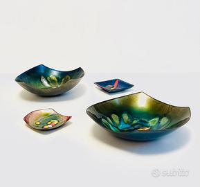 Set di ciotole, opere d'arte in rame smaltato, realizzate dallo Studio Laurana (conosciuto anche come Laurana Rame d'Arte) fondato da Franco Bastianelli a Pesaro, Italia, nel 1958.