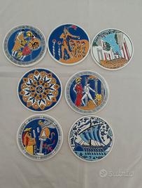 Per realizzo, a soli 8,00 euro NON trattabili, vendo carinissimo set completo (no parziale) 7 sottobicchieri in ceramica greca raffiguranti gesta e personaggi della mitologia greca.