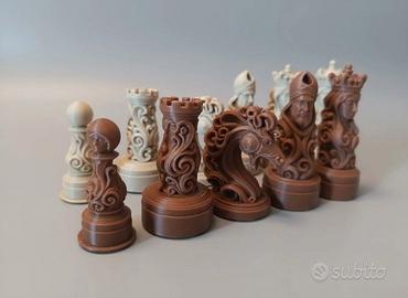 Un elegante set di pedine per scacchi, realizzato tramite stampa 3D con PLA di alta qualità.