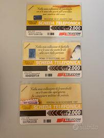 Tutte riportano sul fronte i disegni originali con i tagli da Lire 5.000 – 10.000 – 15.000 e il logo Telecom Italia dell’epoca.