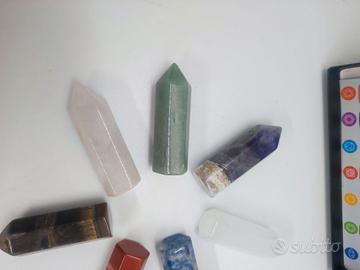 Set composto da 7 punte in pietra naturale, ispirate ai colori tradizionalmente associati ai chakra.