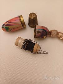 Set per cucito da viaggio anni 50. Completo di fili e portaaghi in legno e ditale in ottone. Smalto martoriato multicolor purtroppo con qualche mancanza. Euro 15. Posso inviare qualsiasi altra informazione a chi fosse interessato. Pagamento e spedizione con tutto Subito.