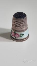 ditale con decorazioni floreali realizzato in argento sterling, come indicato dalla scritta "STERLING" incisa sul lato.
